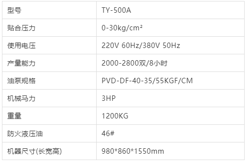本水压机不受任何鞋底外型和尺码限制,每双鞋压力粘着时间只需2-6秒。