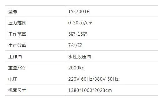 ●采用油压系统,可按鞋型调整压力,平均压力最高可达30kg/c㎡。